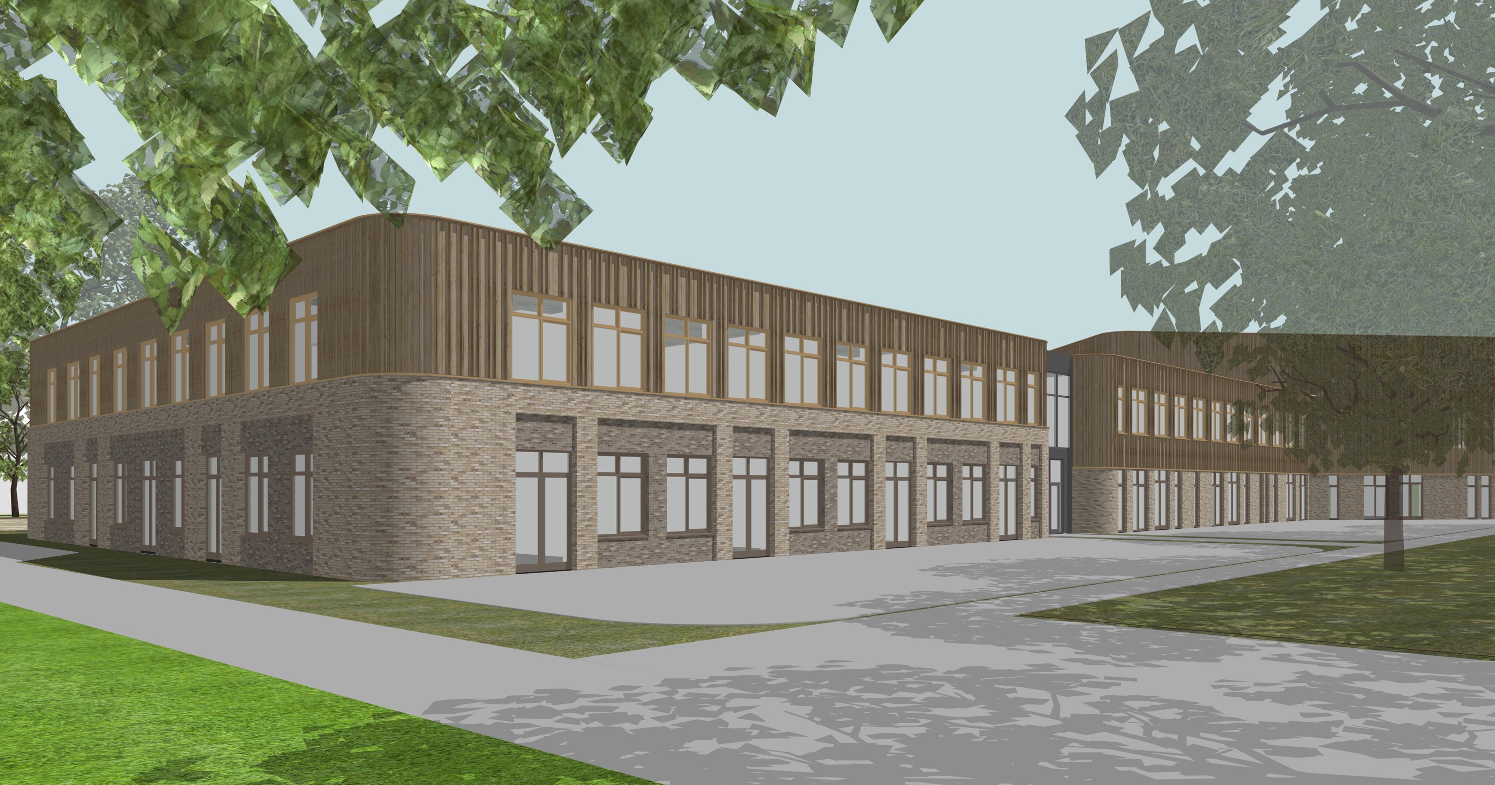 - Het gebouw wordt niet hoger dan twee lagen, op de gymzaal na